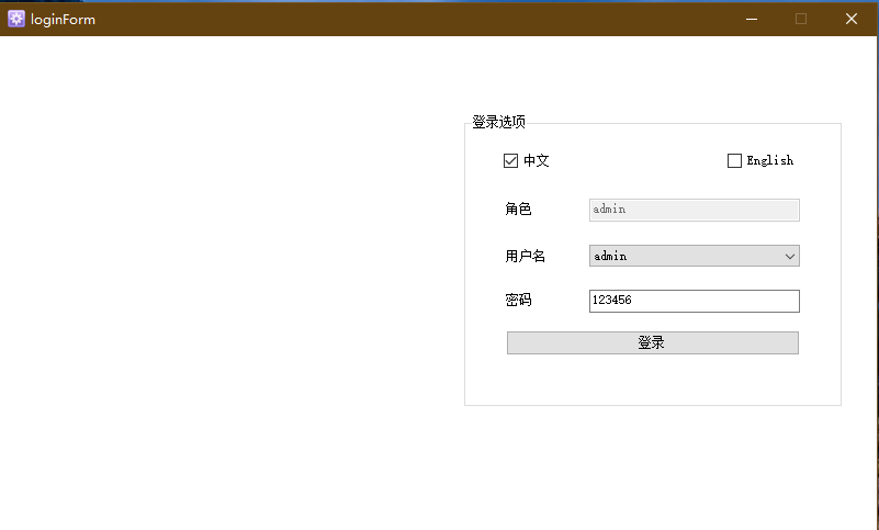 请在用户名列表中选择对应的操作人账号,并在密码栏输入对应的密码。在登录之前确定软件语言项。然后点击登录按钮,完成操作人员的登录动作。